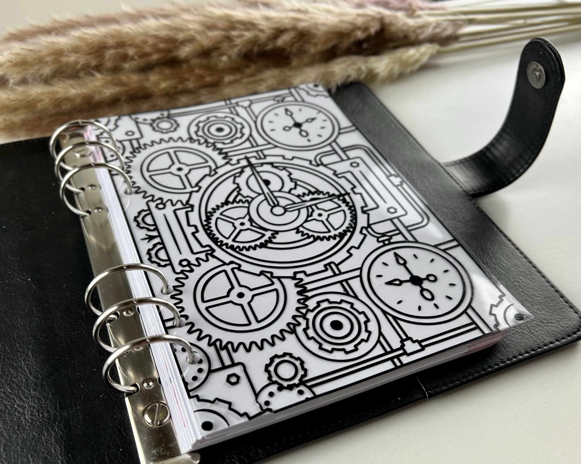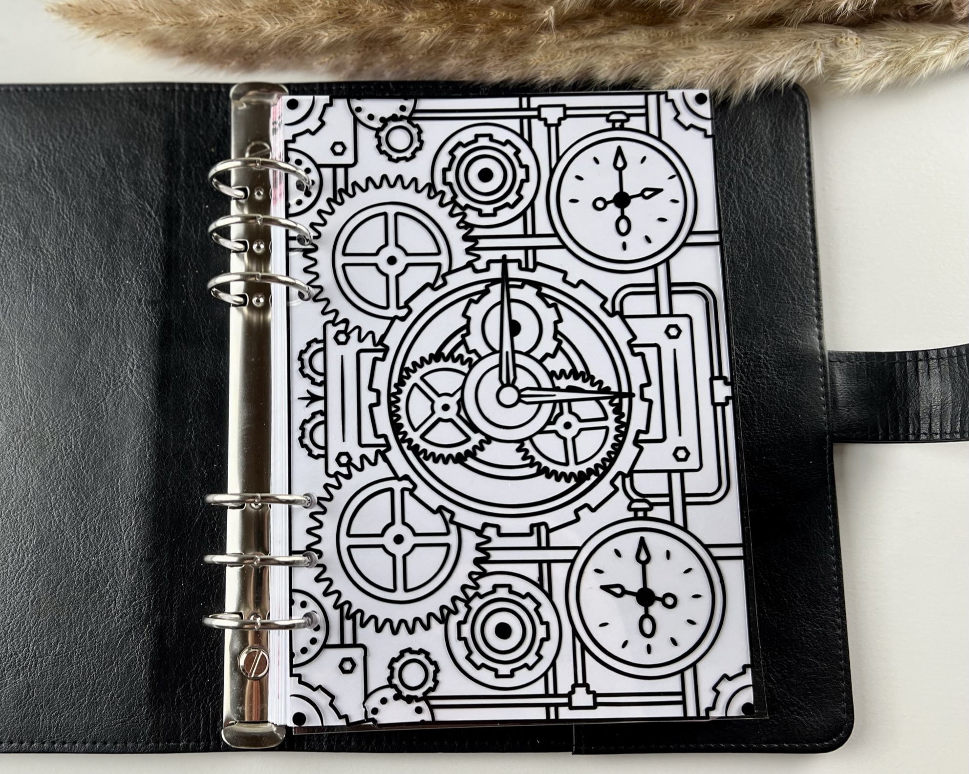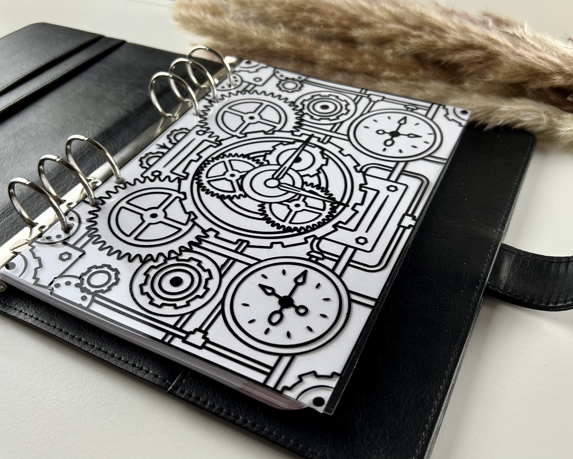 Schwarzes Steampunkmuster auf Acetatfolie.