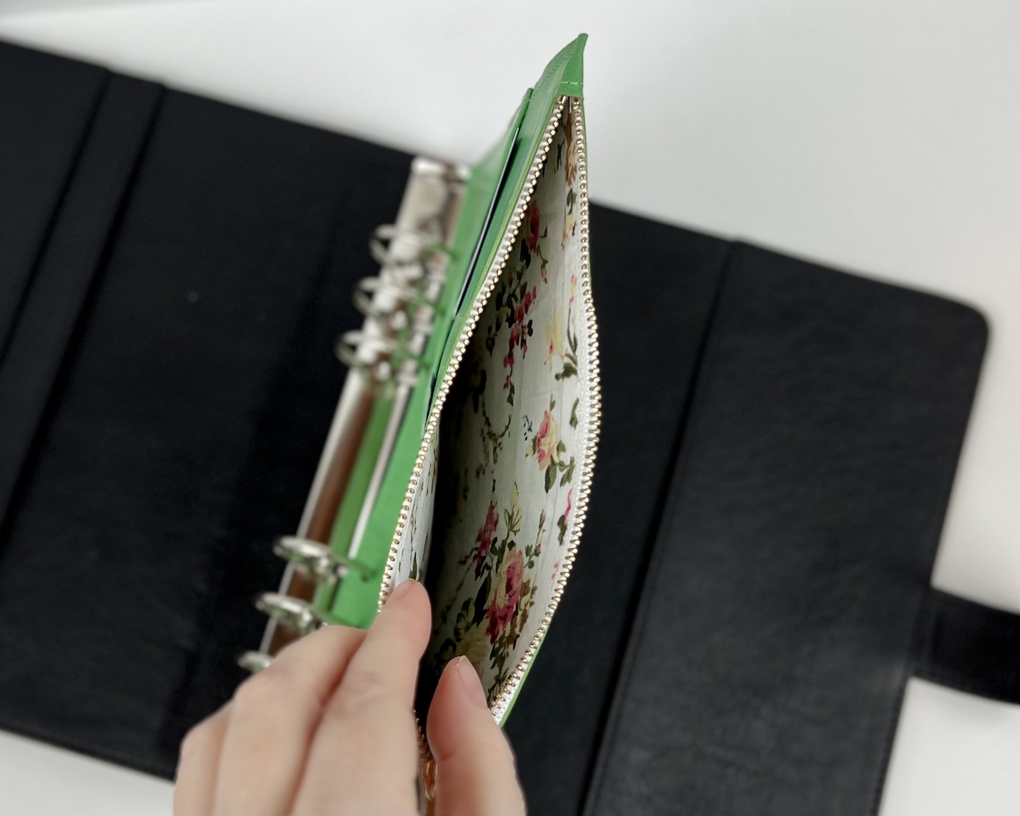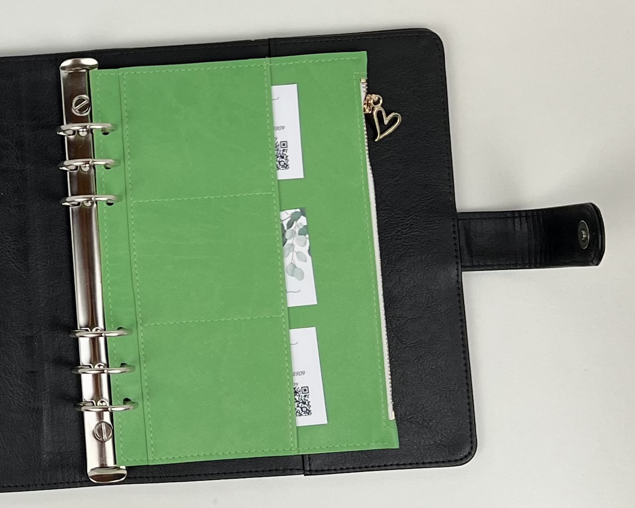 Der Umschlag hat 3 kleine Taschen für Karten.